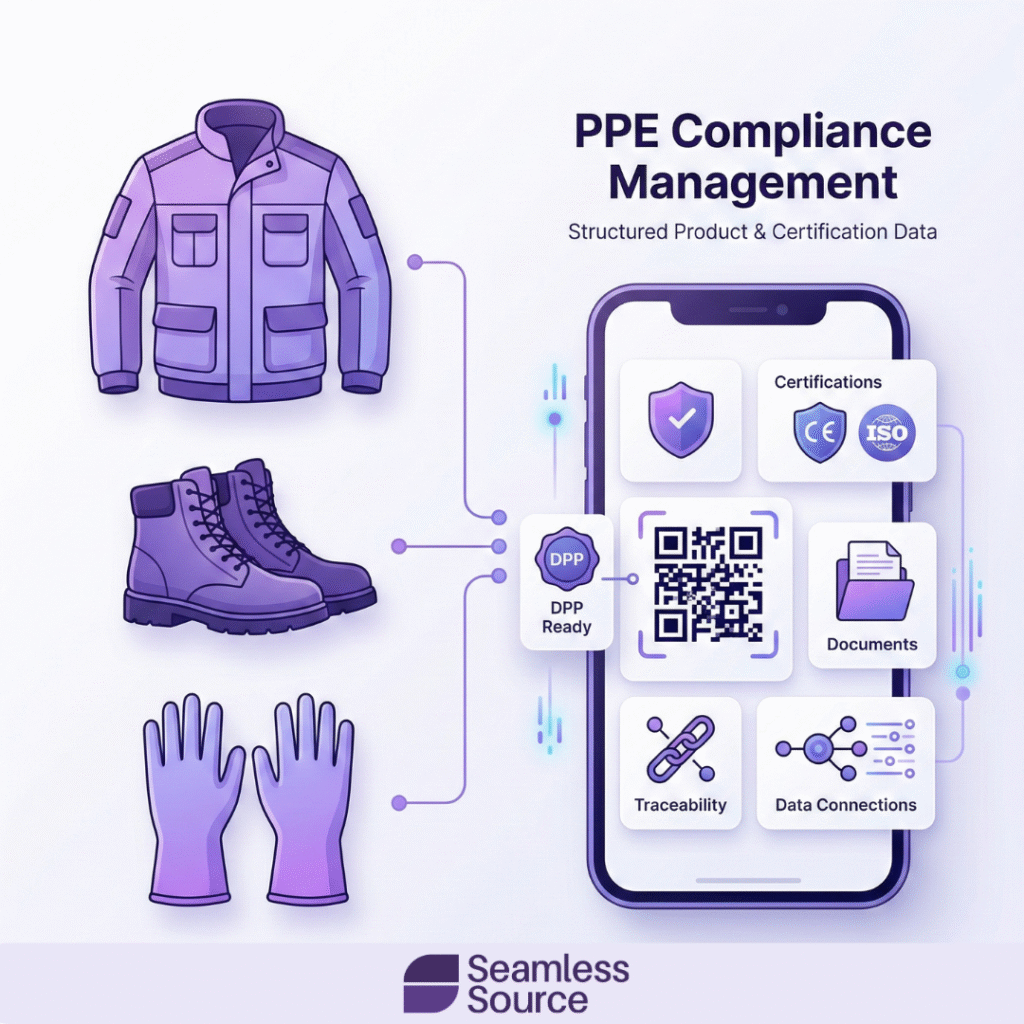 To manage PPE compliance reliably, businesses need more than documents and spreadsheets. They need a structured system where product, certification, and supply chain data are connected.